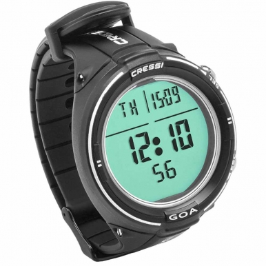 Подводный компютер (декомпресиметр) Cressi-sub Goa, имея в диаметре всего 48 мм, тем не менее, является полноценным подводным компьютером как для дайвинга, так и для фридайвинга, с присущими бренду Cressi-sub надёжностью и простотой в использовании. 35 мм дисплей из минерального стекла, в сочетании с прочным корпусом и стальными кнопками, делают возможным применение этого устройства на глубинах до 120 м.