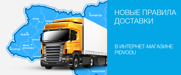 С 18.07.2013 покупая товар на нашем сайте Pidvodu.com.ua, Вы больше не платите за его доставку по Украине! А если Вы нуждаетесь в срочной доставке товара по Киеву (в течение 2-х часов), то такая доставка останется платной, но её стоимость значительно уменьшилась.
